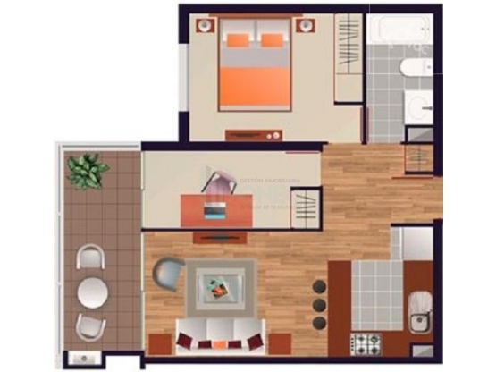 Excelente Departamento de  2 dormitorios  + 1 baño + Estacionamiento + Bodega. Una habitación es amplia y la otra más pequeña. Cuenta además con  living comedor, cocina americana y una amplia terraza. Ubicado en el piso 8 de calle 8va Avenida 1358, comuna de San Miguel. Cocina equipada con encimera, campana, horno, agua caliente por calenfont, conexión a lavadora, muebles de cocina y cubiertas de granito.