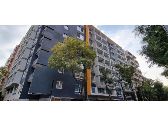 Departamento tipo Estudio con terraza, sin bodega ni estacionamiento, disponible en piso 7. Edificio de solo 9 pisos. Ubicado en barrio Universitario Republica.